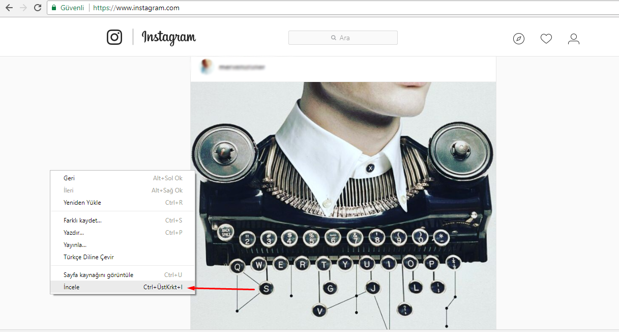 - İlk olarak Chrome üzerinden Instagram’a giriş yapın.